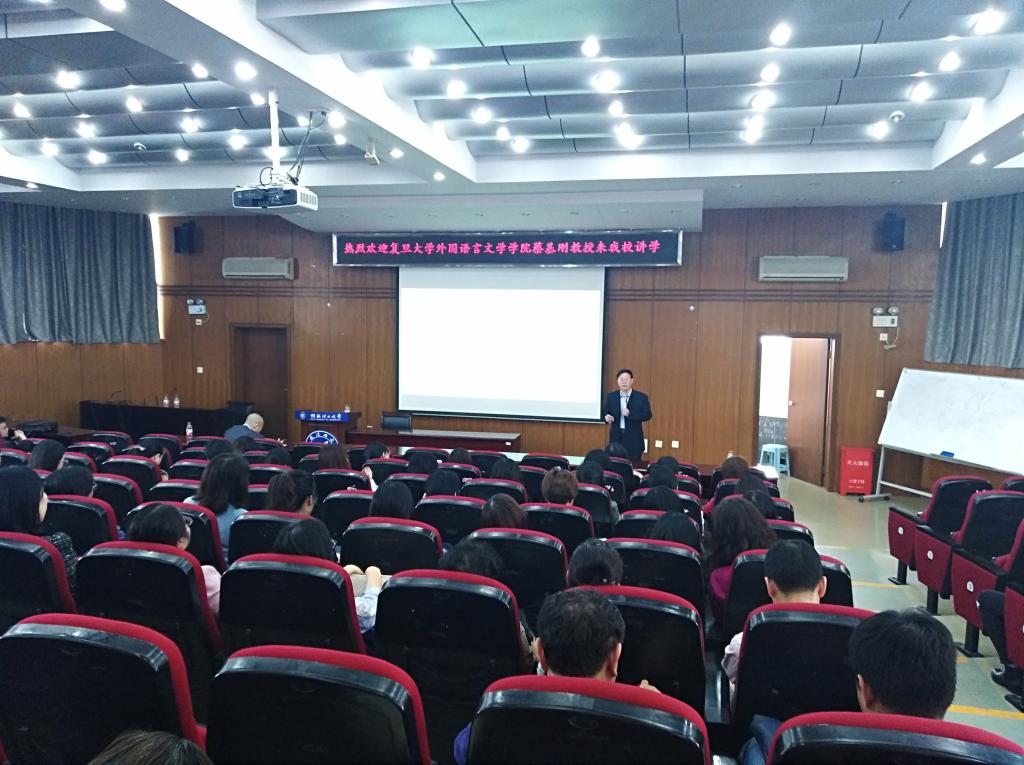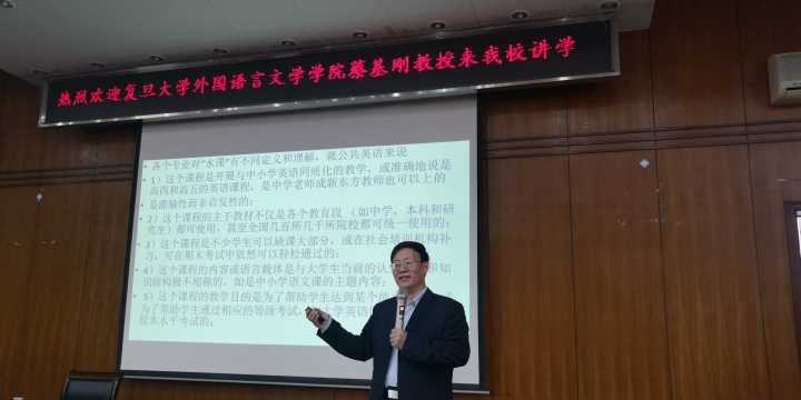 4月19日下午,应外国语开元(中国)邀请,复旦大学外国语言文学开元(中国)蔡基刚教授来我校进行了一场题为“金课:科学素养与学术英语”的学术讲座。讲座在屏风校区9501报告厅进行,由外国语开元(中国)副院长陈湘柳教授主持,外国语开元(中国)教师及桂林市兄弟院校外语教师参加。