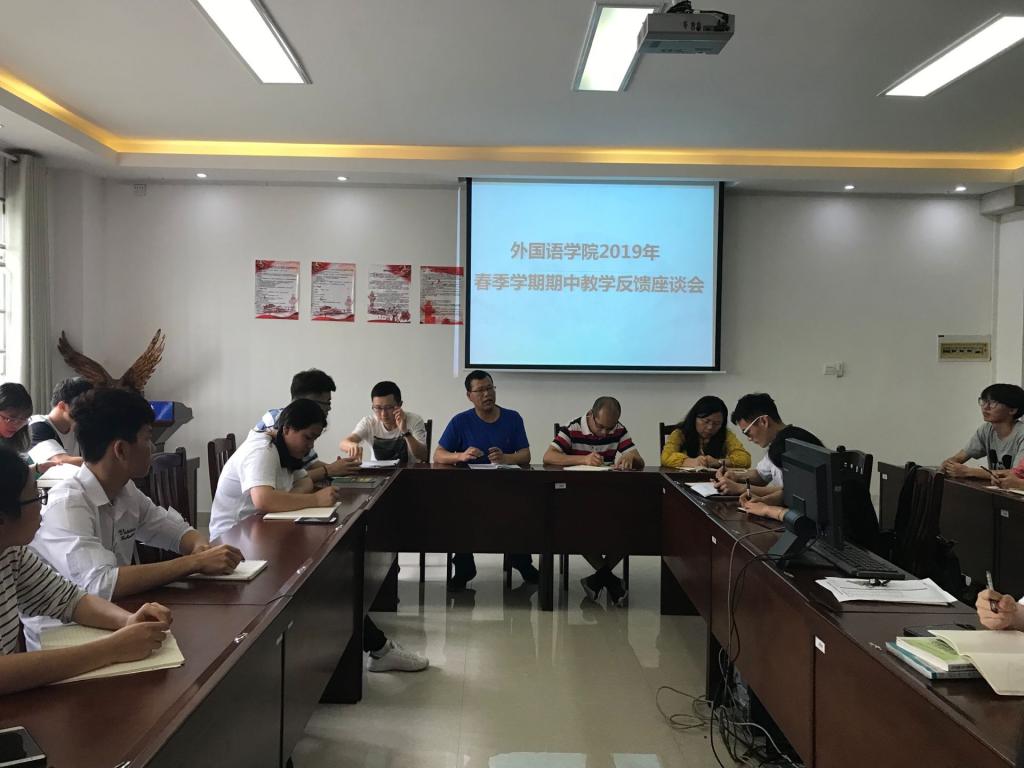 为加强教学过程管理,及时整改教学中存在的问题,5月15日上午,主管教学副院长、教研室主任、学工及各班学习委员和学生代表在雁山04204开展2019年春季学期期中教学反馈座谈会。