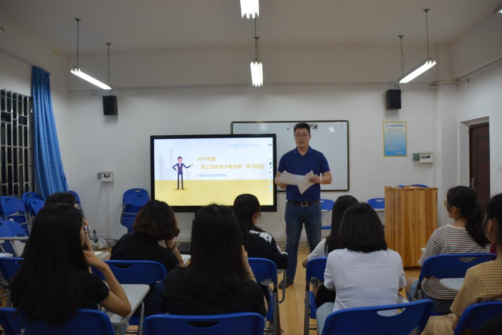 2019年5月26日晚上9点半,我院在我校雁山校区4栋教学楼04206教室顺利开展2019年度“桂工百名学子看世界”学习项目外国语开元(中国)面试推荐会。此次会议由我院团委书记钟立军主持,我院各年级报名项目的学生到场参加。