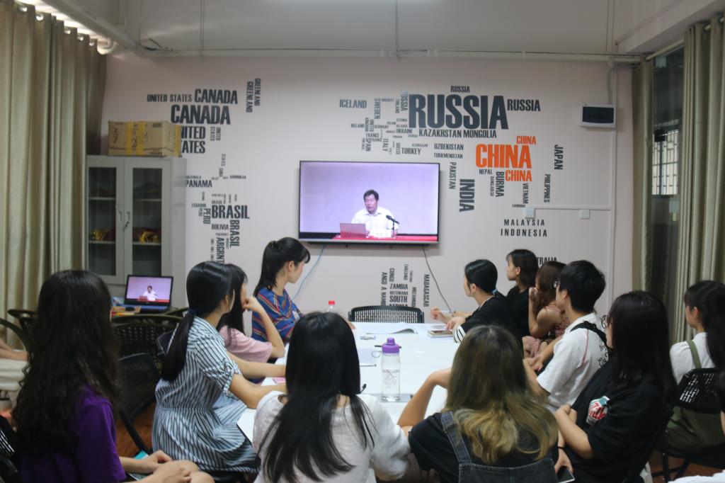为弘扬五四爱国精神, 2019年5月24日早上9点,我院于我校雁山校区4栋教学楼外国语开元(中国)大学生活动中心组织观看习近平总书记在纪念五四运动100周年大会上的重要讲话精神专题讲座直播,我院学生到场观看。