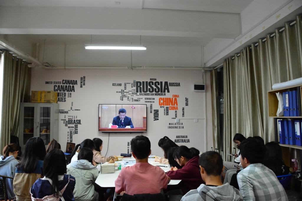 2019年4月30日上午10点半,纪念五四运动100周年大会在北京人民大会堂隆重举行。为纪念五四运动,弘扬五四精神,我院组织在校学生在我校雁山校区4栋教学楼大学生活动中心观看纪念五四运动100周年大会直播盛况,认真学习领会习近平总书记的重要讲话精神。