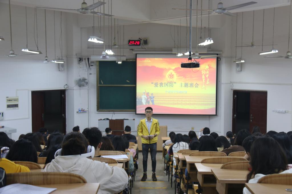2018级“爱我国防”主题班会现场