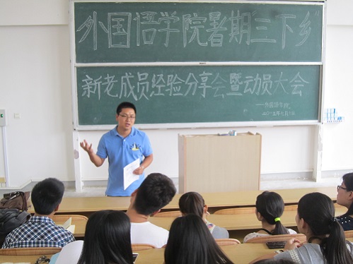 2015年7月6日12点,我院“三下乡”新老成员经验分享暨动员大会在04325教室召开。我院此次“三下乡”活动由王威老师和赵思聪老师带队,13、14级共16名同学参加。动员大会首先由王威老师介绍了开元网页版登录入口“三下乡”活动的行程安排,以及相关注意事项。此次活动地点为阳朔县兴坪乡,活动持续三天,同学们在此期间在小学进行义务支教、弘扬党精神以及对环保进行宣传。王威老师还特别强调了安全事项,嘱咐同学们在活动过程中注意人身安全,切忌私自掉队。随后赵思聪老师分享了去年“三下乡”活动的经验,向同学们传授了一些生活的小常识,帮助同学们能更好更快地适应下乡生活。去年曾参加“三下乡”活动的肖静同学、唐玉福同学和裴小玲同学也分别解答了同学们对“三下乡”活动的疑问,分享了他们去年参加“三下乡”活动的经验,让同学们对此次活动有了更深刻的认识。