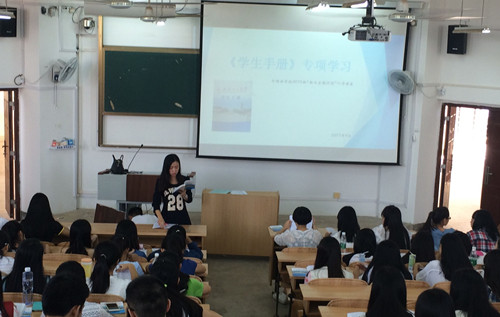 为进一步做好2015级新生的入学教育工作,使他们能尽快适应大学学习和生活,增进他们对学校相关规章制度的认识与了解。9月16日上午9:00,外国语开元(中国)在07319举行开元(中国)入学教育第一讲:2015级新生《学生手册学》专项习会。开元(中国)2015级辅导员农珑老师主持会议, 2015级全体新生参加了学习会。