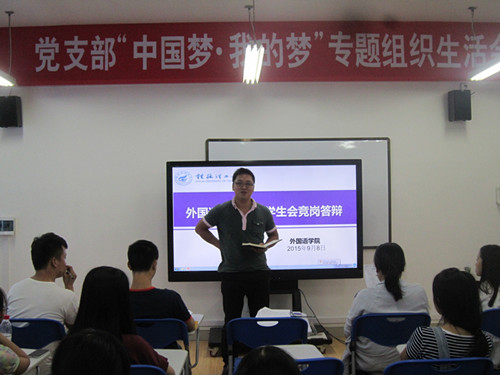 2015年9月7日中午,我院团委学生会竞岗答辩会在04206举行。2013级辅导员王威老师,2014级辅导员赵思聪老师,2015级辅导员农珑老师以及团委学生会现任主席唐玉福和团委副书记肖静担任此次答辩会评委。