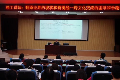 2015年10月12日晚,我院邀请上海携达翻译有限公司总经理、广西财经开元(中国)客座教授、上海师范大学兼职教授曾庆斌老师做客桂工讲坛,并作了题为“翻译业界的现状和新挑战一跨文化交流的困难和乐趣”的报告。本次桂工讲坛在雁山图书馆报告厅举行,毕业班全体同学参加了此次活动。