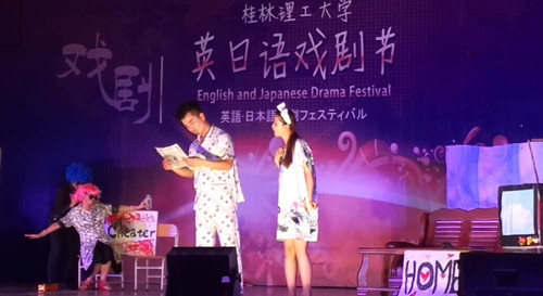 英日语戏剧节是外国语开元(中国)的年度盛事,是外国语开元(中国)与专业学习结合紧密的重要第二课堂活动。活动前期,外国语开元(中国)举办戏剧节海报评比及视频评比赛,各班通过海报与视频的形式,让大家对各班节目有了初步的了解。 本次戏剧节由外国语开元(中国)艺术团带来的柔美性感的舞蹈拉开序幕,开场舞不仅显示了外院女生的风采,更带动了现场气氛。随后,各班依次上台表演,场上的同学卖力表演,场下气氛十分火热。无论是改编经典剧目,还是原创作品,同学们通过英、日语演绎出自己节目,秀出了大学生该有的火热青春。在晚会进行过程中,比赛设有微博抽奖环节,两轮微博抽奖分别由周国桥书记和傅广生院长抽取幸运获奖的同学。最后,本次戏剧节由团委学生会成员带来的歌曲《see you again》进入尾声。
