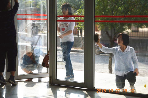 志愿者清洁门窗