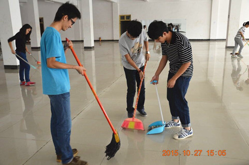 27日下午,志愿者们在大学生活动中心集合,由本社团活动负责人交代清洁任务,此次活动的地点为大学生活动中心一楼大厅。在活动中,志愿者们不怕脏,不怕累,相互帮助,共同合作。