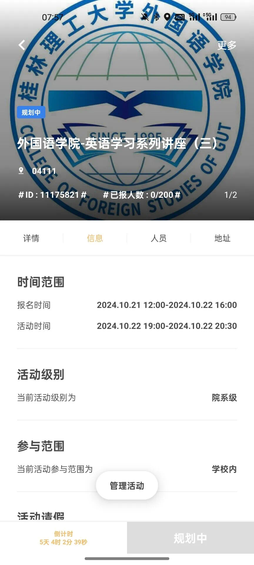 报名方式:请有意参加的同学们在下图所示时间段内通过“到梦空间”平台搜索活动ID:1175821找到活动,点击“报名活动”之后“提交报名”即为报名成功。