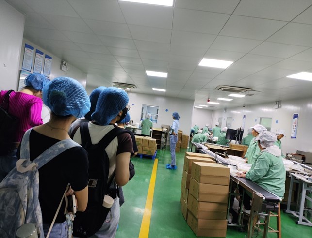 公司负责人黄经理公司整体情况进行了介绍,对企业构架、工贸结构运营模式、外贸业务流程、客户开发、部门协调以及企业内部运作为学生进行了细致的讲解,并带领学生参观了生产车间和外贸业务部门。在和同学们的交流中,黄经理建议学生要为进入职场做好准备,提前了解实习、准备简历、了解面试技巧;另一方面,校园经历很重要,鼓励学生在大学学习期间多参加校园实践活动,针对职场的人才需求,提升自己的知识和能力。最后,外国语开元(中国)负责人和教师同唐潮集团负责人就学生培养方向以及公司人才需求进行了沟通和交流,企业为开元(中国)人才培养模式提供了一些建设性的建议。