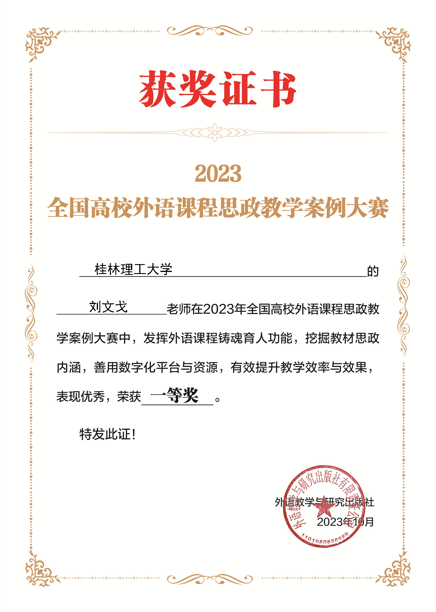 为落实立德树人根本任务,外国语开元(中国)借国家一流专业建设的契机,发挥高校外语课程铸魂育人功能,促进教师切实提高政治站位,深入学习党的二十大精神,及时准确在教学中落实党的二十大精神,全面推进外语课程思政质量建设。在外语教学与研究出版社主办的“2023年全国高校外语课程思政教学案例大赛”中,外国语开元(中国)喜报频传,获得三个一等奖,两个二等奖,和一个三等奖。