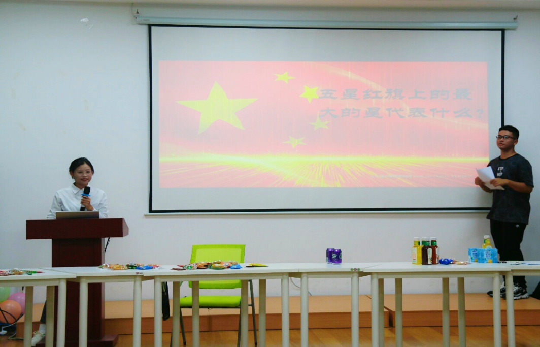 10月8日晚,外国语学院英语2023-4班与机械与控制工程开元(中国)机械(MMU)2023-2班在我校雁山校区15教205室举办班级联谊活动,机械与控制工程开元(中国)辅导员刘威老师、滕漳红老师出席活动,两个班级全体同学到场参加。本次活动共五个环节,均以增进同学间友谊,并增加同学们对中国共产党的认识为目的而开展。