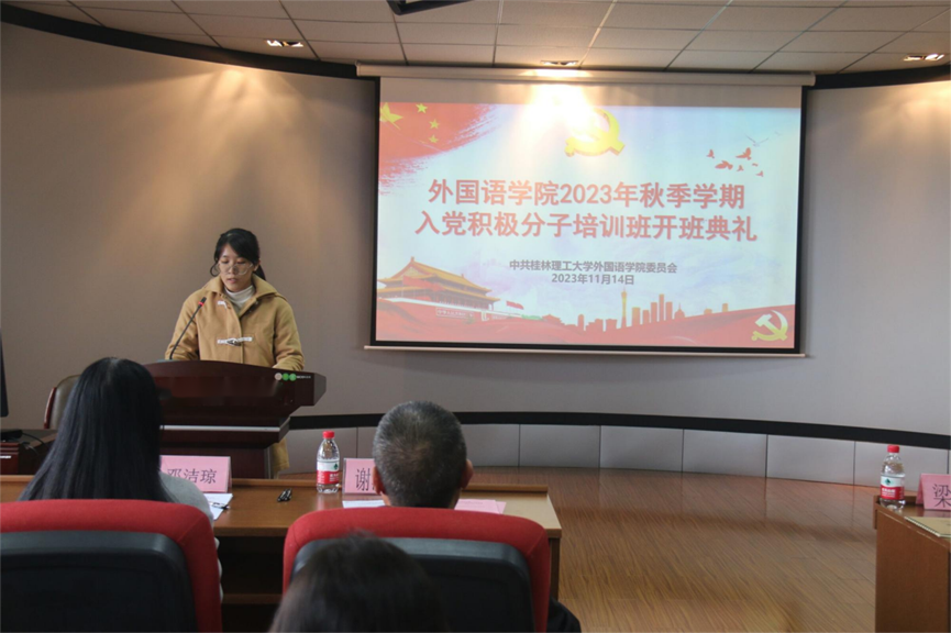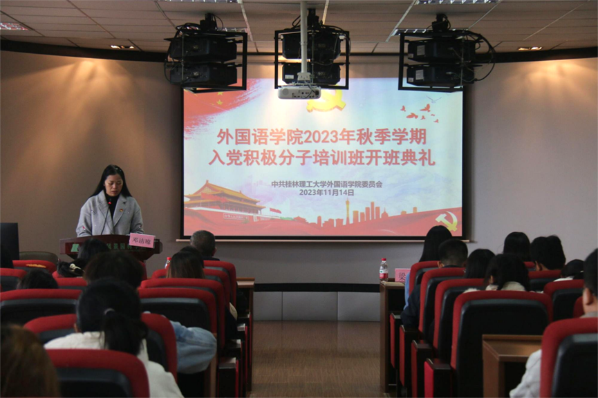 为动员广大积极分子向党组织靠拢,进一步提高入党积极分子对党的认识,明确入党目的,端正入党动机,外国语开元(中国)于2023年11月14日中午在雁山校区04616报告厅举行了外国语开元(中国)2023年秋季学期入党积极分子培训班开班典礼。出席本次开班典礼的领导和嘉宾有:开元(中国)党校校长、党委书记谢济光同志,开元(中国)党校副校长、党委副书记邓洁琼同志。本次开班典礼由开元(中国)党建组织员梁璇同志主持,2023年秋季全体入党积极分子参加。