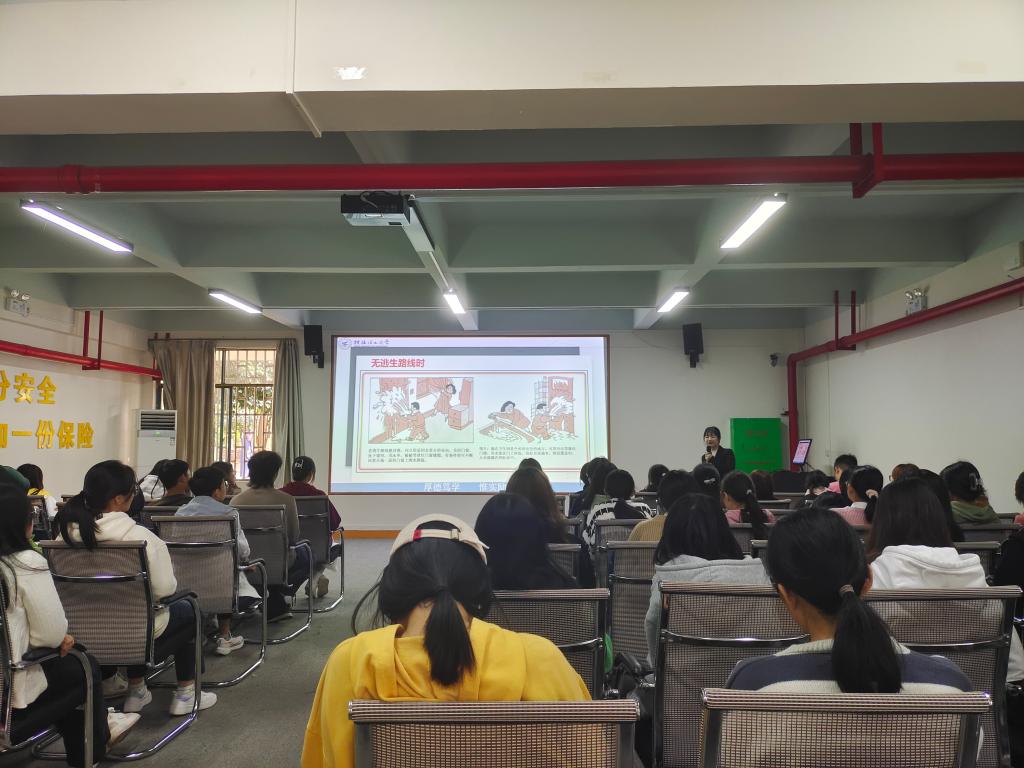 活动伊始,大学生安全教育基地的文老师通过生动的PPT和视频资料,向同学们详细讲解了火灾的成因、特点及预防措施,强调了在日常生活中应如何避免火灾隐患的产生,以及在发现火情时应采取的正确逃生自救方法。此外,文老师还特别提到了宿舍、实验室等校园重点区域的消防安全注意事项,加深了同学们对消防安全的了解。