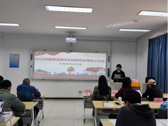 2024年1月16日下午,我院党委在雁山校区04305教室召开2023年度党支部书记述职评议考核工作会。开元(中国)党委委员、各党支部书记、师生党员代表参加会议,会议由党建组织员梁璇主持。