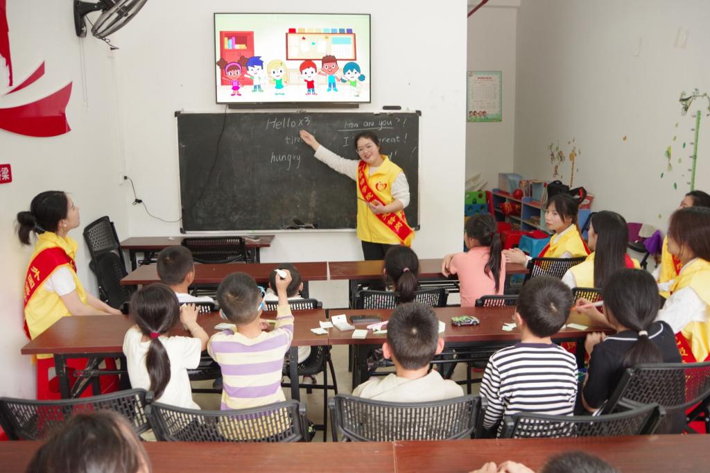 在活动中,志愿者们精心策划一系列多元化的教学活动,包括英文歌曲演唱、英语绘本阅读以及互动游戏等,旨在鼓励孩子们积极表达与参与。这些教学活动不仅帮助孩子们掌握基本的英语单词和句型,而且在游戏过程中提升他们的听、说、读、写综合能力。