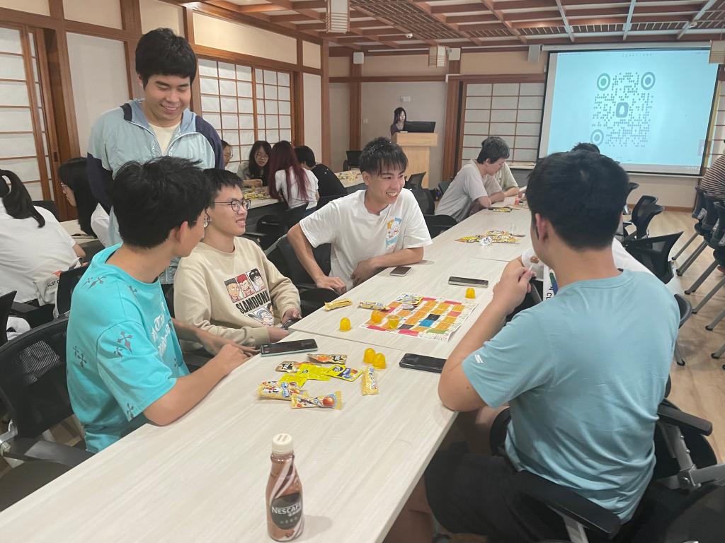 本次日语角以“双六游戏”为主题,活动伊始,同学们在主持人的引导下玩听台词猜动漫的游戏,同学们热情高涨,活动现场的气氛达到高潮。随后,大家分组体验双六游戏,在游戏过程中,大家在欢笑中使用日语,分享自己喜欢的日本文化。最后,大家积极与老师们交流本次活动的心得和体验,本次日语角活动在和谐愉悦的气氛中圆满结束。