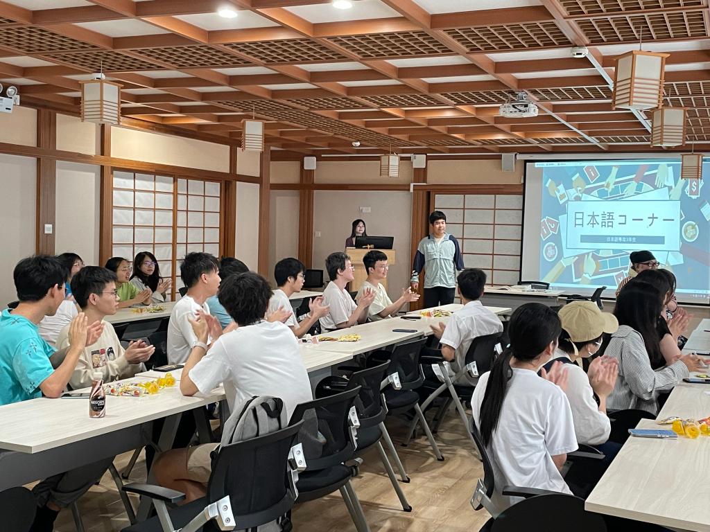 2024年4月26日下午,外国语开元(中国)日语系于致远楼日本文化体验馆举行了本学期首次对外开放的日语角活动。小出老师、吉田老师、董丽仙老师、刘慧老师以及对日语感兴趣的多名学生参与本次活动。本次活动旨在提高学生对日语的学习兴趣,培养学生的日语语感,切实增强学生的口语运用能力,促进学生对日本文化的理解。