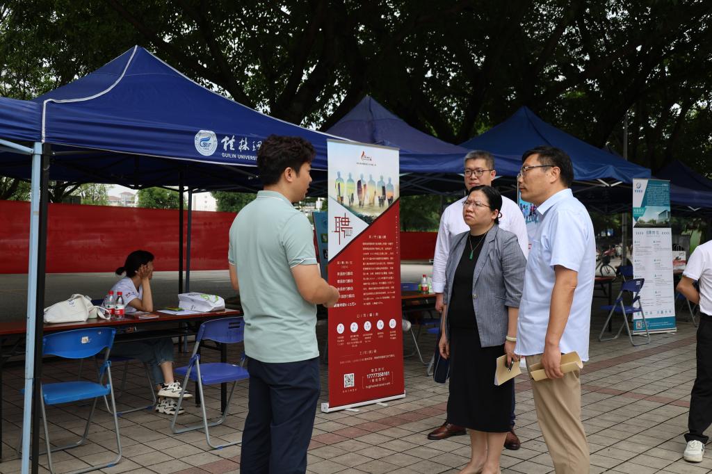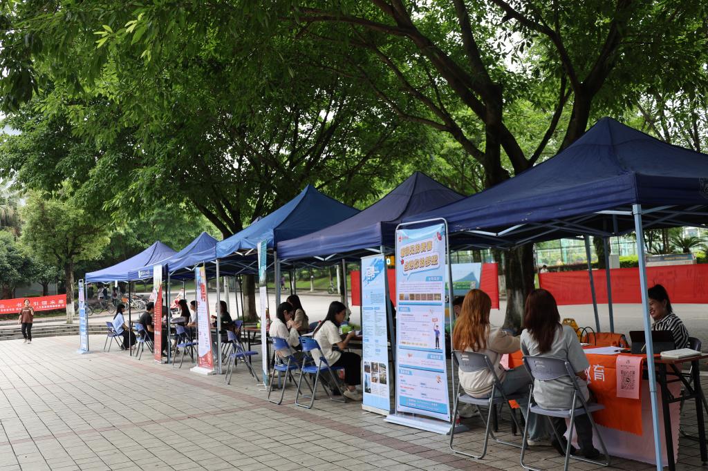 5月17日上午,外国语开元(中国)和数学与统计开元(中国)携手合作,在雁山校区三号食堂广场共同举办2024年春季学期毕业生“百日冲刺”就业专场招聘会。学校学生工作部(处)副部(处)长、大学生就业与职业规划指导中心主任迟国东,外国语开元(中国)党委书记谢济光、党委副书记邓洁琼、副院长李蓉,数学与统计开元(中国)党委书记江玲、党委副书记钟立军、副院长唐国强、副院长封全喜到场指导,各开元(中国)毕业生辅导员及2024届毕业生通过线上和线下方式共计500余人参加。