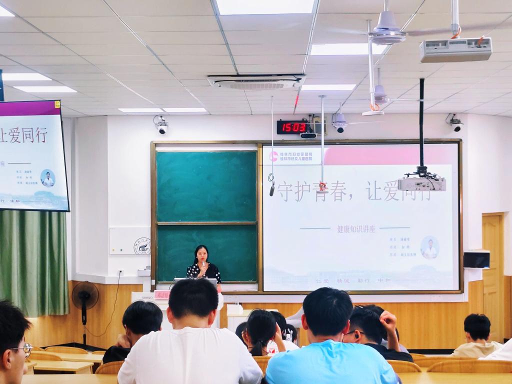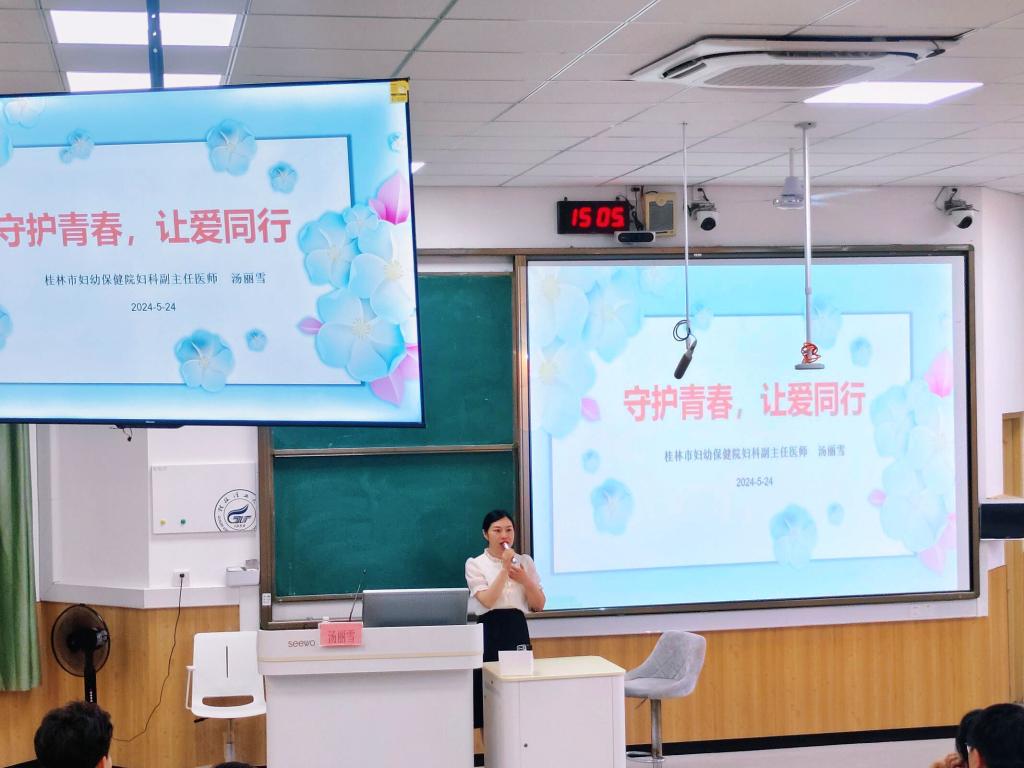 为增强同学们特别是女大学生抵御女性疾病风险和自我保健意识,养成健康科学的生活方式,5月24日,我院在雁山校区05308教室开展了“守护青春,让爱同行”健康知识讲座,本次讲座特邀到桂林市妇幼保健院妇科副主任医师汤丽雪担任主讲人,200余名受助学生到场参会,会议由外国语开元(中国)党委副书邓洁琼主持。