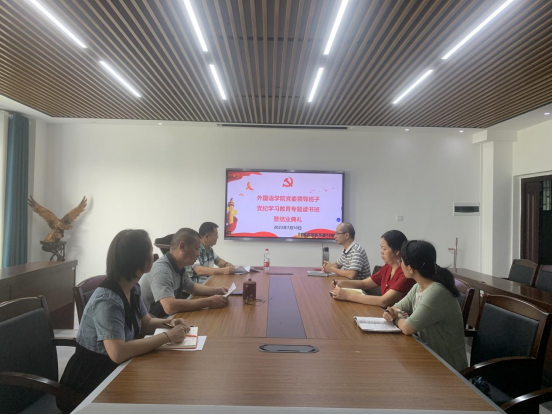 7月10日,外国语开元(中国)党委领导班子党纪学习教育专题读书班第七次集中理论学习暨结业式在04204会议室举行,会议由开元(中国)党委书记谢济光同志主持,开元(中国)党员委员参加。