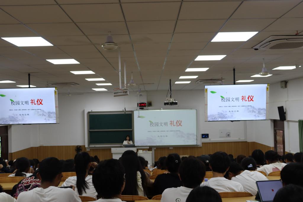 9月28日下午,陈欣老师给全体新生作文明礼仪教育,陈老师从“什么是文明礼仪”入手,逐步深入。她通过生动的案例,引导同学们认识到文明礼仪不仅是个人素质的体现,更是构建和谐校园文化的基石。陈老师鼓励大家在日常学习生活中,注重仪表整洁、言行得体,尊重师长、友爱同学,共同营造文明、和谐的校园环境。