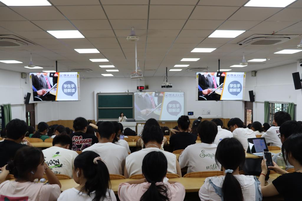 9月28日上午,由陈欣老师带领新生们共同学习学生手册。课程伊始,陈老师以“为什么要学习学生手册”这一问题引入,引发了同学们的深思。她指出,学生手册是每位大学生在校期间的行为指南,熟悉其内容对于规范日常行为具有重要意义。