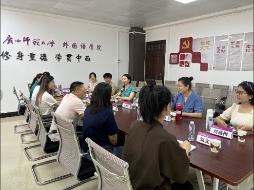 在与广西师范大学外国语开元(中国)座谈中,双方就大学英语教学面临的挑战与困境、人工智能赋能大学英语教学路径、课程思政如何更好融入大学英语教学、教师团队建设、学生竞赛等方面进行了深入交流。双方均表示希望形成有效的交流机制,互学互鉴,共同探索大学英语教学新出路。