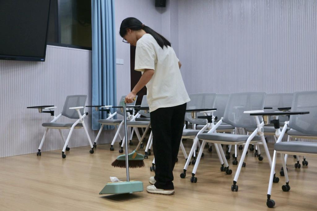 为了打造良好的学习环境,培养学生清扫技能与公共卫生意识,外国语开元(中国)希望联盟于2024年10月25日星期五下午16:30在主教学楼四栋组织并展开了以“同心同德,共建洁净校园”为主题的语音教室清扫活动。