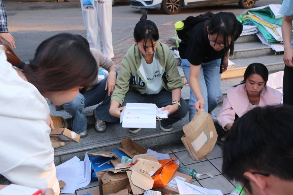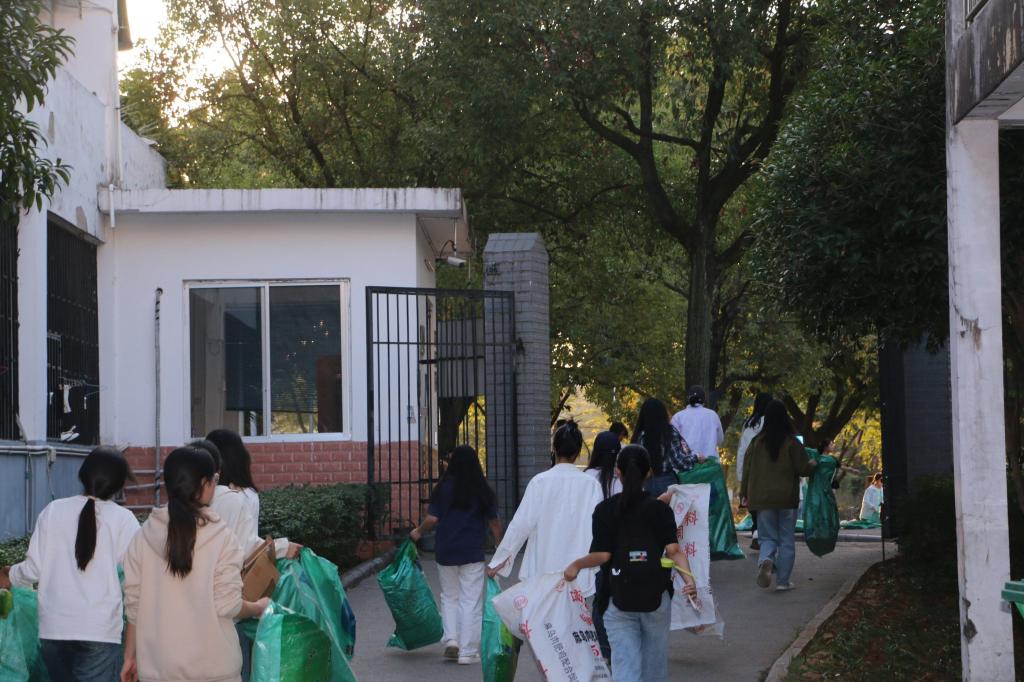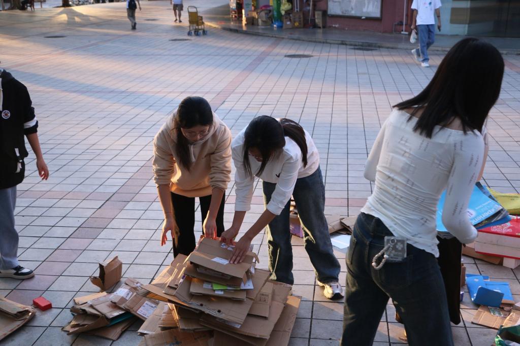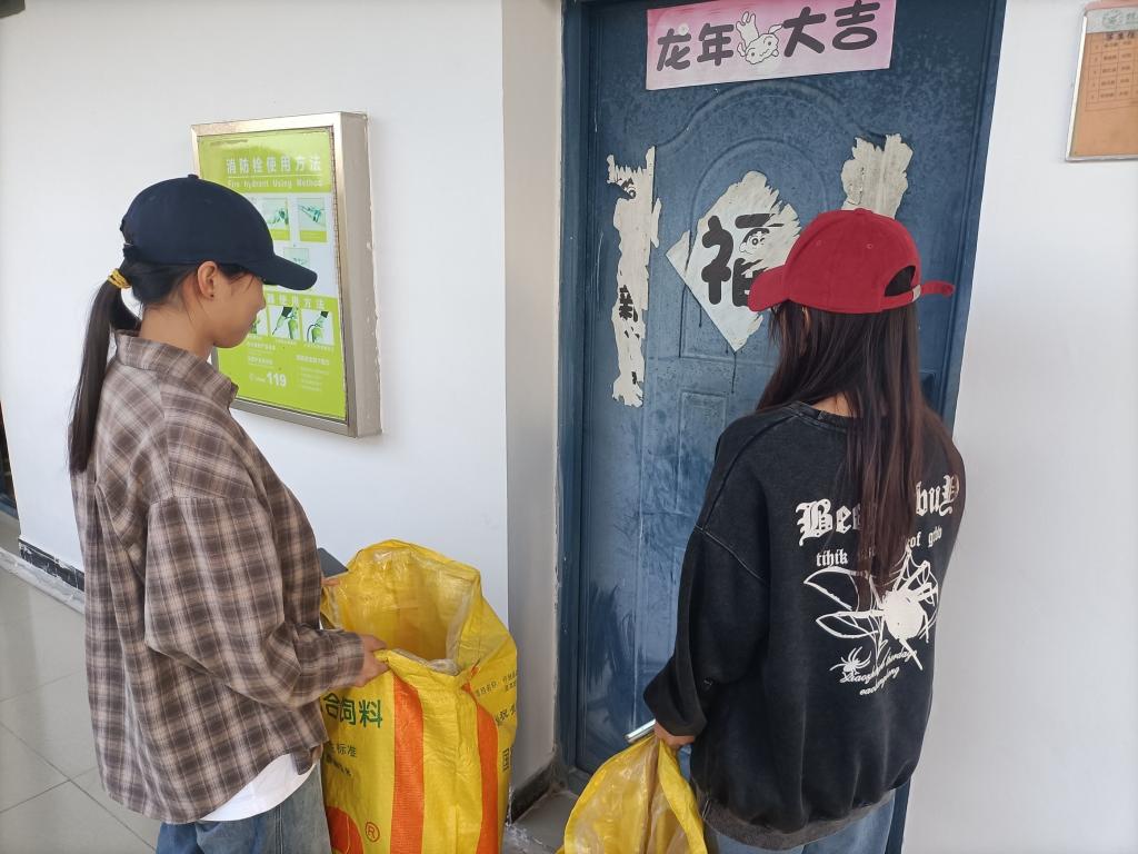 活动以小组形式进行,活动开始前进行点名、签到,签到完毕后,各小组长认领小组成员,确认人数后按照活动前期任务分配,由小组长带领前往各宿舍楼展开废品回收活动。活动过程中,各志愿者和小组长领取各自的麻袋,跟随小组长礼貌询问有可回收废品的宿舍,回收过程中发现地上留有污渍或垃圾时,也积极主动地帮忙清扫干净。每一个活动参与者都相互配合,相互帮助。最后,志愿者将收获满满的废品清点、分类、整理。整个回收过程中,志愿者们一丝不苟地完成自己所负责的区域,高质量地完成了废品回收任务。活动即将结束之际,总负责人再次点名,志愿者们进行签退,活动圆满结束。