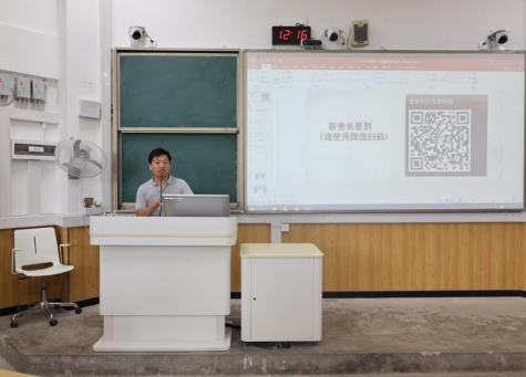 接着,于文霖老师发表讲话。于老师指出保持宿舍卫生的必要性,并表示宿舍卫生检查数据与学年综测评定挂钩,希望各宿舍长能够重视;宿舍长要做好宿舍卫生清洁和安全排查工作,组织宿舍成员定期进行清扫,以防因卫生清洁不到位导致安全事故的发生。最后,于老师再次强调各宿舍长一定要做好晚汇报的工作,留意宿舍成员的去向。