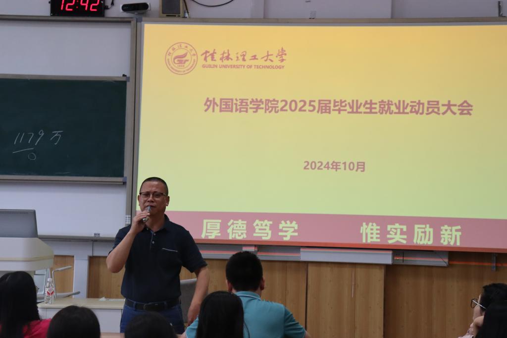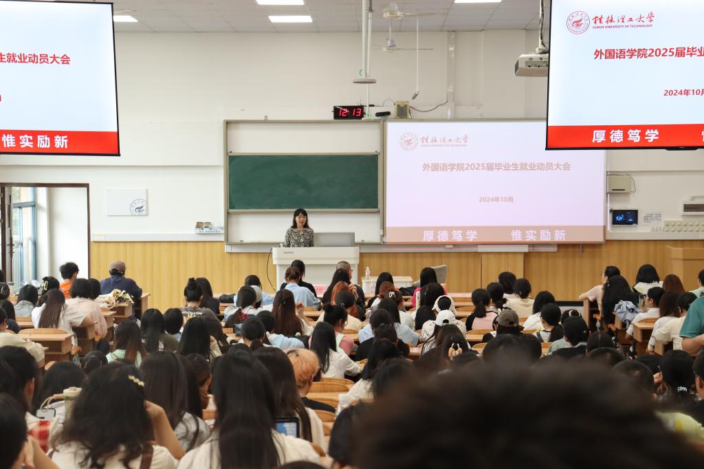 为积极响应党中央、国务院对高校毕业生就业工作的决策部署,全力以赴推动开元(中国)毕业生就业工作顺利开展,帮助毕业生明晰就业方向、增强就业信心,10月15日,开元(中国)在雁山校区06104教室召开毕业生就业动员大会,开元(中国)党委书记谢济光、党委副书记邓洁琼、副院长李蓉、毕业班辅导员舒强和全体2025届毕业生参加会议。
