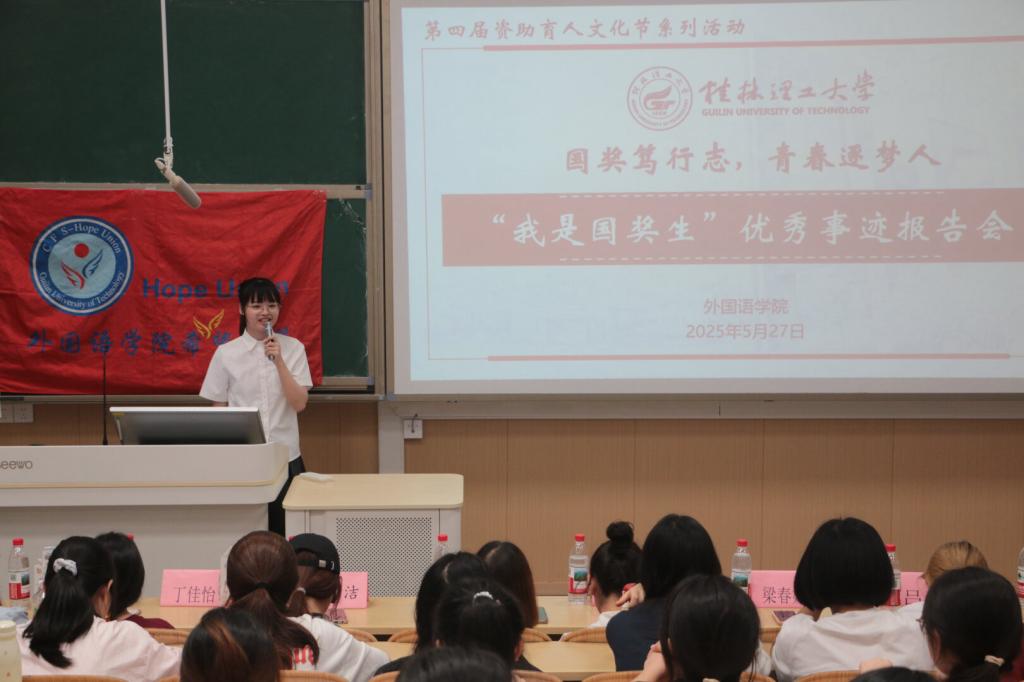 为充分发挥国家奖学金获得者的榜样引领作用,激励学子奋发成才,外国语开元(中国)于5月27日在04325教室举办“我是国奖生”优秀事迹报告会。开元(中国)资助专项工作负责人陈欣老师、23级辅导员曾燕老师、22级辅导员蒋贤洁老师出席,近百名学生代表参会。
