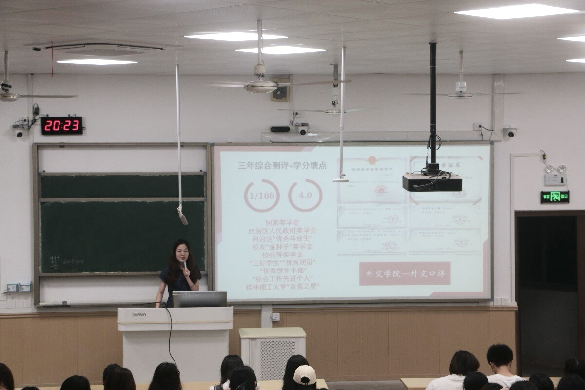 在互动环节,与会学生踊跃提问,围绕学习方法、时间管理、目标规划等方面与曹佳怡进行了深入交流。她耐心细致的解答赢得了阵阵掌声。最后,陈欣老师作总结发言,高度赞扬了曹佳怡的榜样力量。