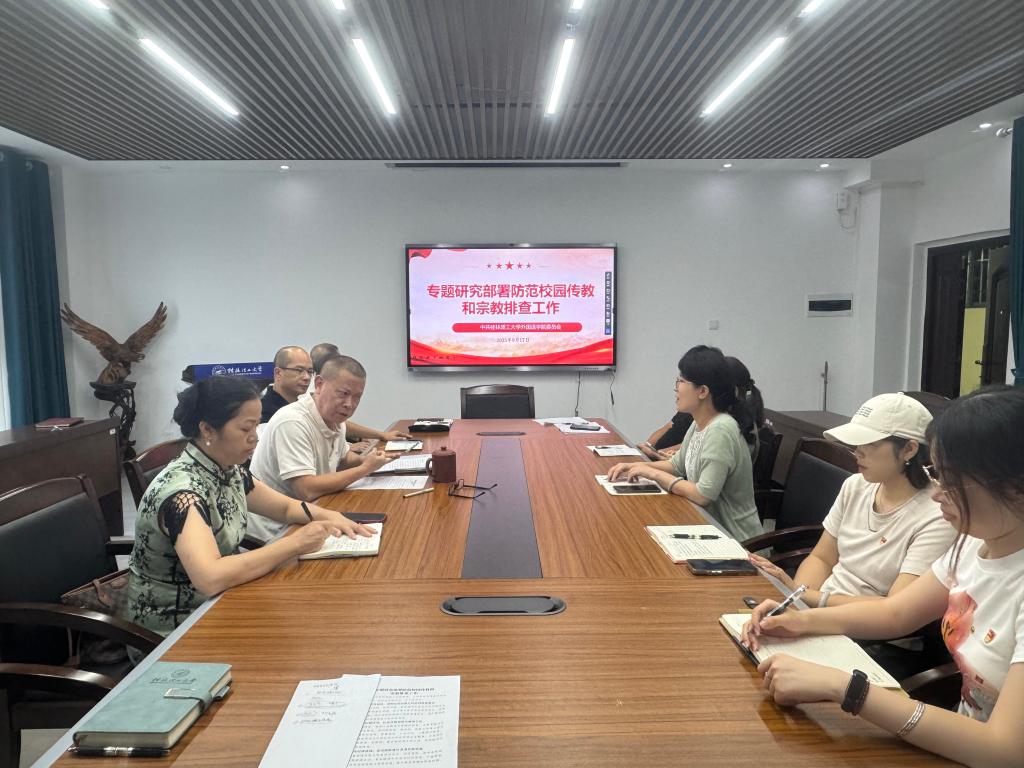 9月17日,外国语开元(中国)在雁山校区04204会议室召开专题会议,研究部署防范校园传教和宗教排查工作。开元(中国)党委领导班子全体成员出席会议,会议由开元(中国)党委书记谢济光主持。