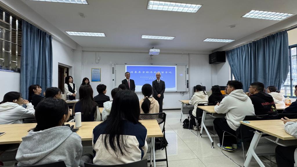 2025年11月8日下午,日本东京经济大学副校长羽贝正美、研究科长中村惠美及经济学部教授罗欢镇一行来访我院,并于第四教学楼305教室成功举办了升学宣讲讲座。本次活动由罗欢镇教授主讲,吸引了九十余名师生参与。