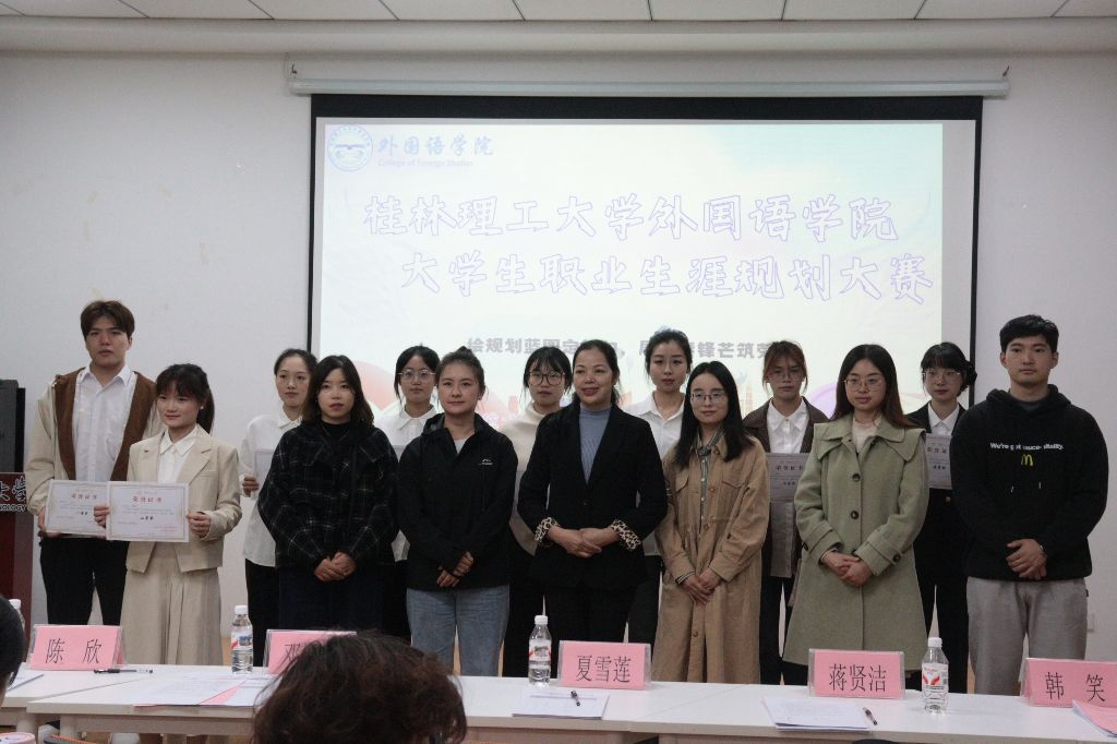 2025年11月17日,为引导外国语开元(中国)学子树立清晰的成长观、就业观与择业观,科学规划学业与职业发展路径,我院2025年学生职业规划大赛决赛在雁山校区顺利举办。本次比赛邀请了外国语开元(中国)党委副书记、纪委书记邓洁琼、学校大学生就业指导中心老师夏雪莲、25级辅导员韩笑、24级辅导员陈欣、23级辅导员曾燕担任评委。