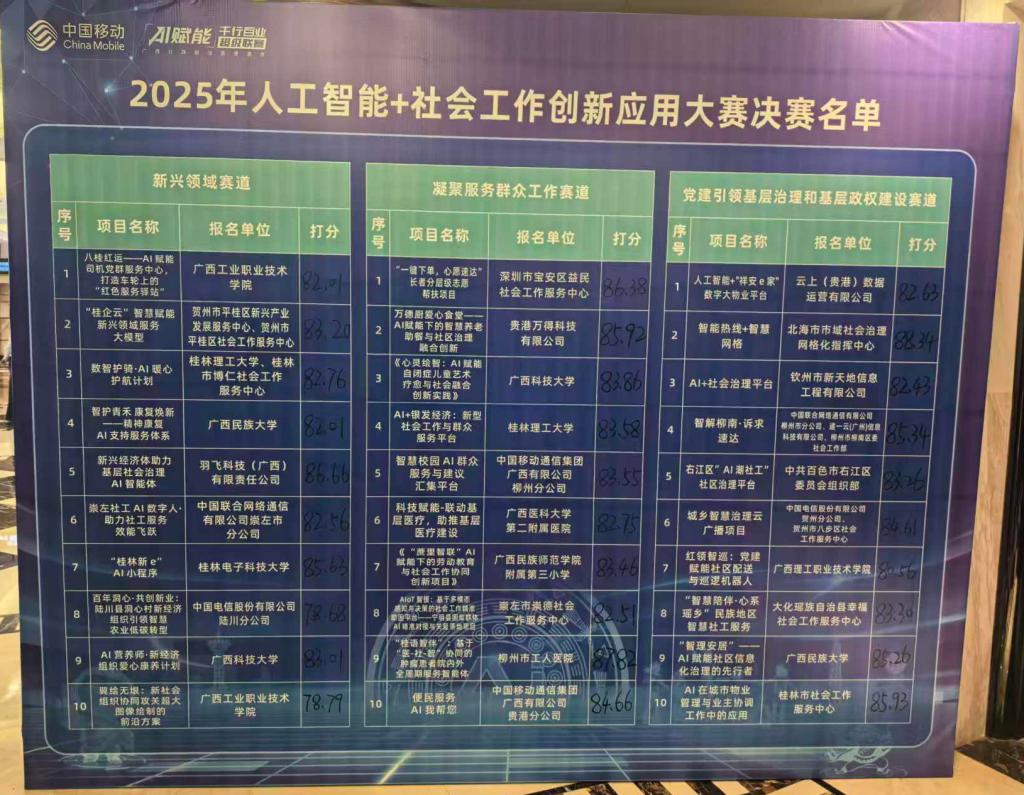 11月19至21日,2025年广西人工智能+社会工作创新应用大赛总决赛暨颁奖仪式在贵港举行。