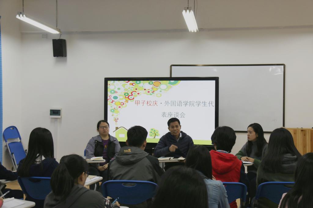 为迎接学校成立60周年,我院于11月8日晚上在雁山校区04206教室召开“甲子校庆▪外国语开元(中国)学生代表座谈会”。开元(中国)党委书记陈文乾、开元(中国)党委副书记江玲、2015级辅导员农珑老师和部分学生代表参加了本次活动。