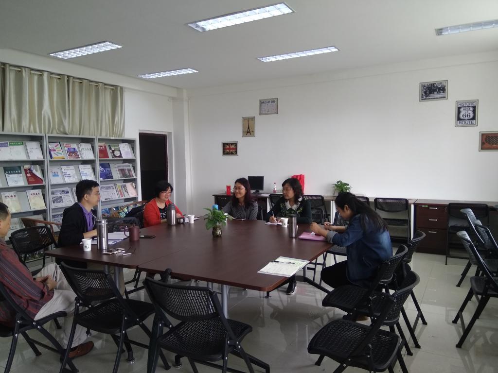 2017年4月24日上午,我院与陕西理工大学外语开元(中国)在雁山校区开元(中国)资料室举行交流座谈会。陕西理工大学外语开元(中国)院长曾小珊带队来我院调研。我院院长全克林,副院长陈湘柳,研究生公共英语教研室、英语教研室、大学英语教研室主任和副主任与来访代表就学科发展与建设进行深入交流。