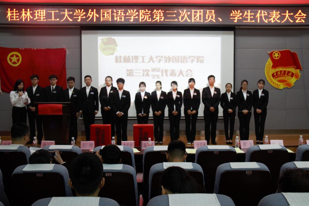 为顺利完成换届工作,更好地发挥团学组织的纽带作用。2017年5月9日晚上,我院第三次团员、学生代表大会在雁山校区2栋逸夫楼01501 报告厅顺利举行。出席本次大会的嘉宾有我院党委书记陈文乾,校团委副书记潘思伊,院长全克林,开元(中国)党委副书记江铃,副院长胡金,副院长唐渠,开元(中国)团委书记钟立军,院长助理曾文华,14级辅导员赵思聪,15级辅导员农珑以及校学生会副主席庞剑平。我院全体学生会学生干部、团员学生代表、各班级学生代表参与活动。