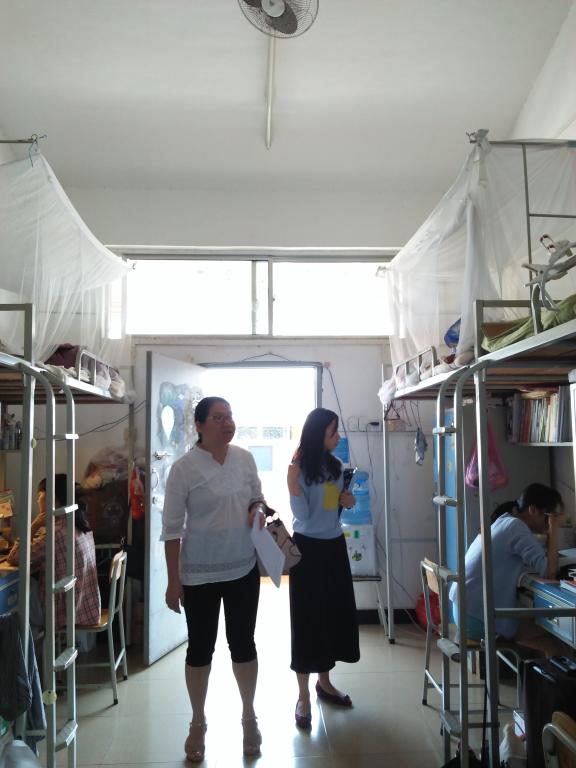 2017年5月26日上午,外国语开元(中国)党委书记陈文乾、党委副书记江玲、团委书记钟立军及辅导员农珑老师与毕业生党员一起深入开展宿舍安全隐患排查专项活动。