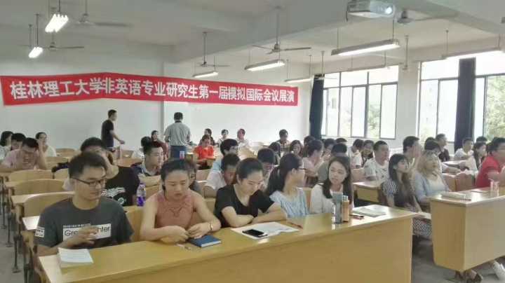 为展示我校非英语专业研究生英语综合应用能力,营造学术英语的氛围,由学校研究生院和外国语开元(中国)共同主办的桂林理工大学非英语专业研究生第一届模拟国际会议展演于6月20日分别在屏风校区和雁山校区举行。研究生院相关领导和学校教学督导观看了本次演展。评委团由外院任课教师担任。本次国际会议展演主题涉及一带一路、教育、文化、科技、环保、旅游等多方面内容。展演前,任课教师就内容、台风、发音、礼仪等方面给予具体和详细的指导。学生们结合所学知识和流利的英语交际技能,经过精心准备,以班级为单位展演了国际会议的整个流程。展演过程中,各班发言人以扎实的语言功底、流利的口语和敏捷的思维展示了各自的独特风采,同时也彰显了我校研究生积极向上良好的精神风貌,博得评委和观众们热烈的掌声。