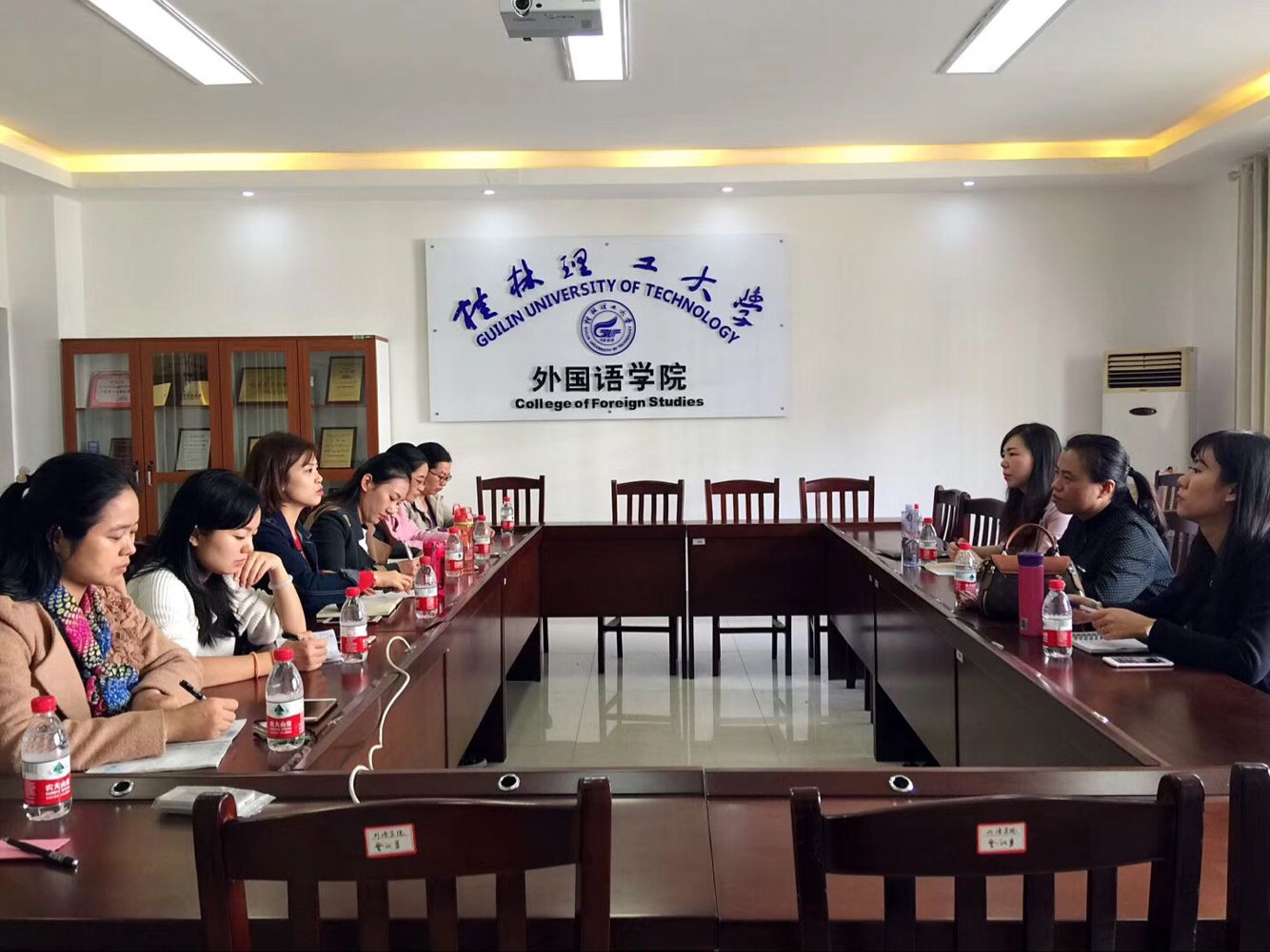 10月20日上午,广西科技大学鹿山开元(中国)外语系大学英语教研室主任董月琳一行7人来我院参观交流,我院大学英语第二教研室主任彭惠玲热情接待了参观团一行。