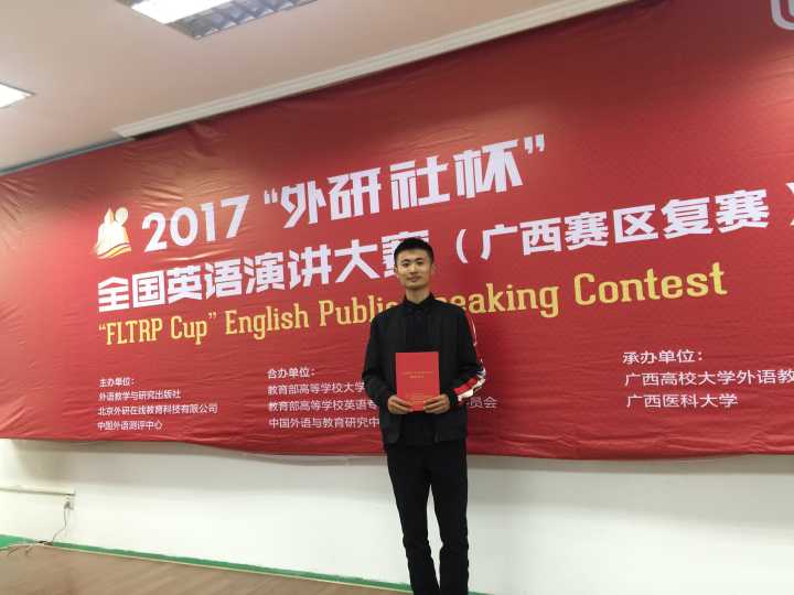 日前,2017年“外研社杯”全国英语演讲大赛广西赛区决赛在广西医科大学落下帷幕。“外研社杯”全国英语演讲大赛是由外语教学与研究出版社、教育部高等学校大学外语教学指导委员会、教育部高等学校英语专业教学指导分委员会和中国外语与教育研究中心联合主办的大赛, 是为全国参赛人数最多、规模最大、水平最高的英语演讲赛事。