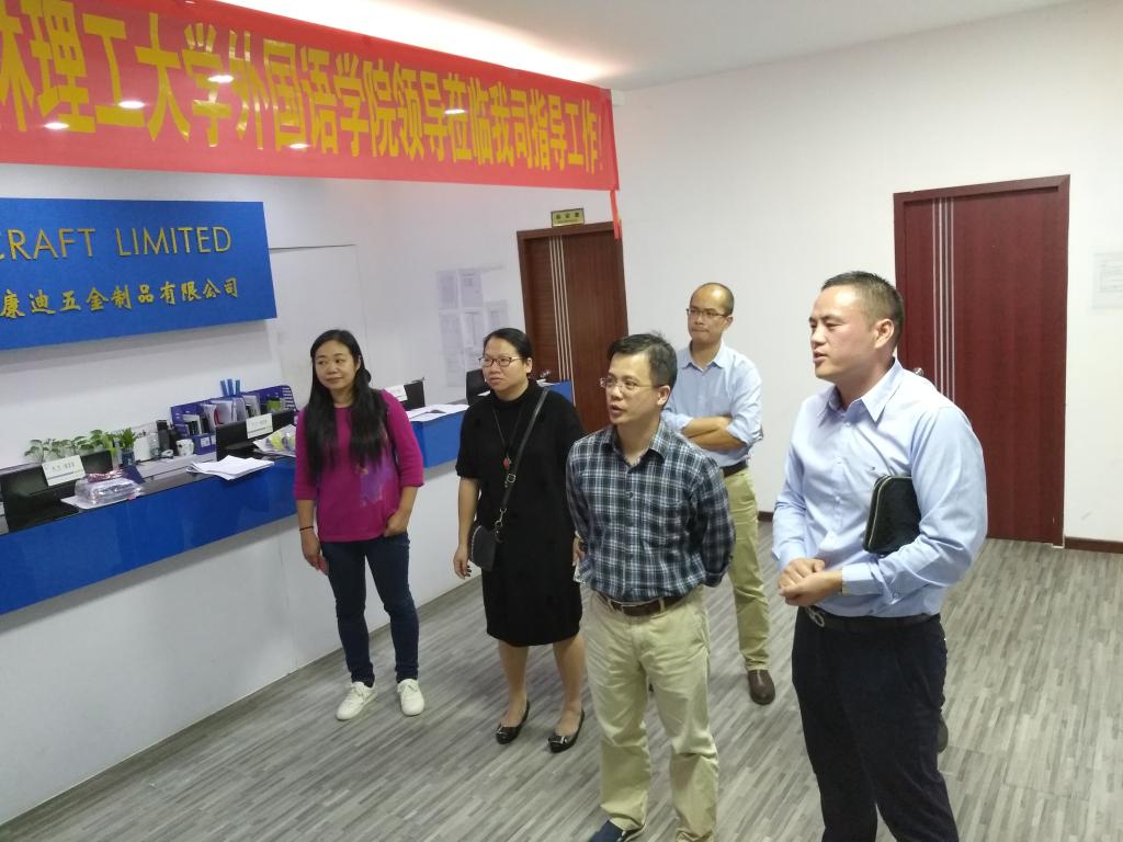 为了进一步了解我院毕业生就业环境,增进校企间合作。2017年11月3日,由我院院长全克林教授带队,到广东中山康迪五金制品有限公司走访调研,同行的还有我院党委副书记江玲、开元(中国)院长助理曾文华、英语教研室主任亢江瑶、开元(中国)团委书记钟立军。