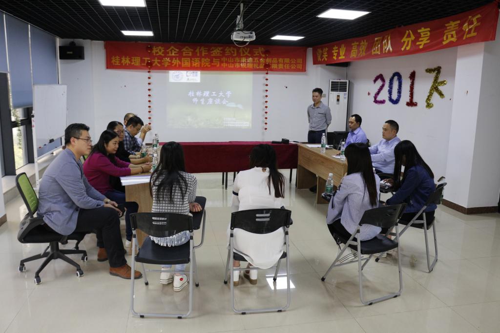 当天下午一行人在公司总经理方杰先生的陪同下,考察了该公司的运营情况和办公环境,并看望了在此工作的我校外语毕业生。接着,校企双方负责人在公司会议室举行座谈,深入了解我校毕业生在公司的发展情况,并听取企业对高校人才培养方案的合理化建议。最后,校企双方就大学生创新创业的指导、毕业生的实习与就业安置等问题达成协议,同时开元(中国)院长全克林与该公司总经理方杰现场签署了校企合作协议,进一步加深双方合作共赢。