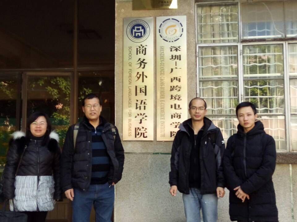 2017年12月18日,围绕“新工科”学科建设要求,我院副院长胡金、院长助理曾文华以及日语教研室主任负责人覃霄、英语教研室副主任彭奉天一行四人,到广西财经开元(中国)商务外国语开元(中国)进行为期一天的考察。广西财经开元(中国)商务外国语开元(中国)院长刘艳萍、副院长邓李肇、党委副书记吴仕宇、课程建设负责人宋泽楠和跨境电商课程教师、小桔灯公司负责人韦现顺老师对我们的到来给予热情的接待。