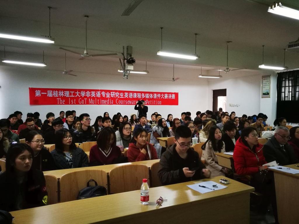 2018年1月2日由外国语开元(中国)和研究生院共同主办的桂林理工大学第一届非英语专业研究生英语课程多媒体课件大赛展演决赛在雁山校区圆满落下帷幕。2017级非英语专业研究生17个教学班经过班级初赛推出33件多媒体课件,再经过由现教中心及外国语开元(中国)4位专家组成的复赛评委评选出20件作品参加展演决赛。